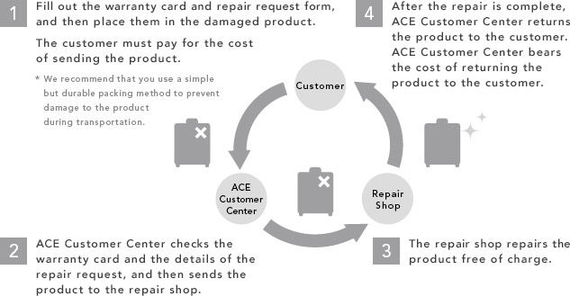 To request warranty repair, fill out the warranty card and repair request form, place them in the product to be repaired, and send them to the zlks Customer Center in Japan or repair contact in each countries. The warranty card will be placed back in the product and returned to you.