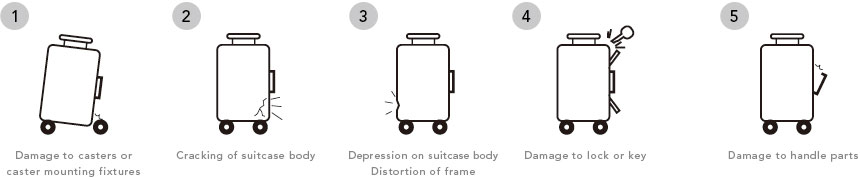 If the normal use of your suitcase is not possible due to any of the following reasons, zlks Co., Ltd. will provide a free repair service for an unlimited number of times during the warranty period.